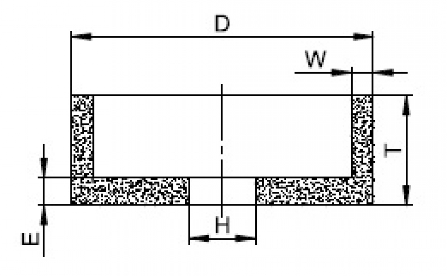 D=100 mm T=50 mm H=20 mm W=10mm E=10mm
