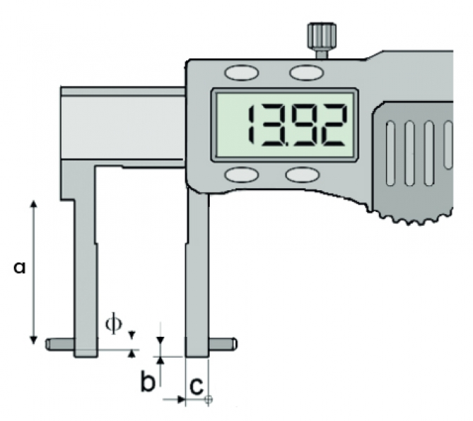 Merilo z navznoter nagnjenimi okroglimi merilnimi konicami.