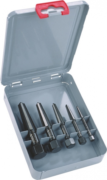 Set za odstranjevanje poškodovanih vijakov ali navojnih vijakov iz navojnih izvrtin. Primerno za leve ter desne navoje. Izdelani iz kaljenega CV jekla. Orodje je zaradi svoje pregledne postavitve hitro dostopno ob odprtju škatle.