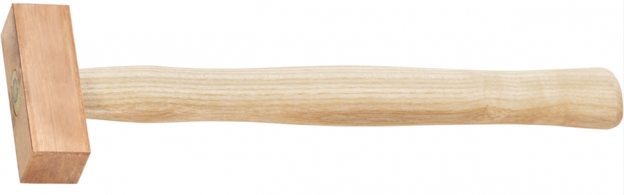 Orodjarsko kladivo z bakreno pravokotno glavo z odlomljenim robom.