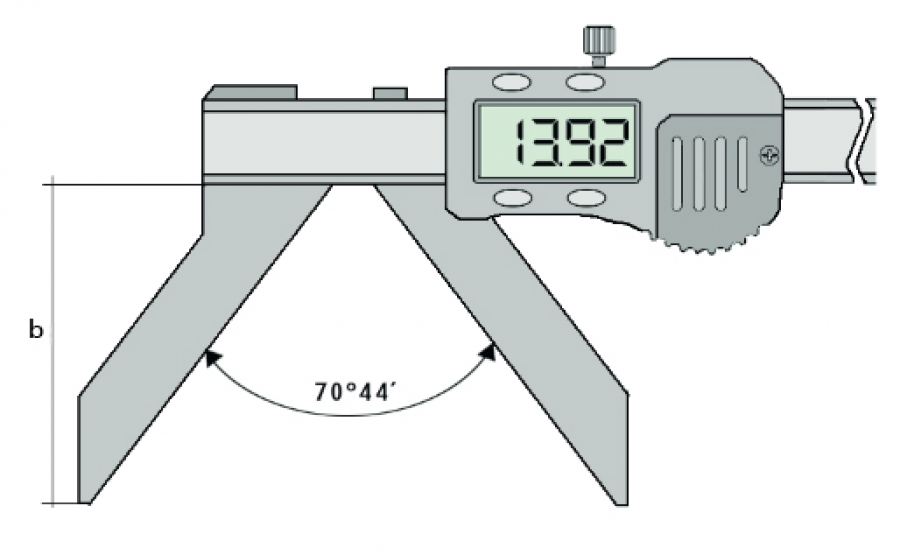Digitalno pomično merilo za merjenje zunanjega loka in radija iz nerjavečega jekla.