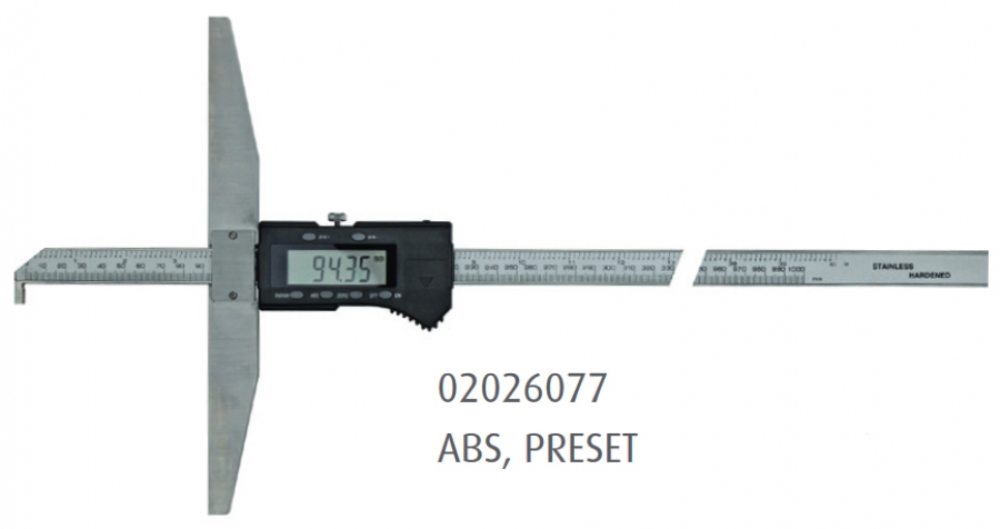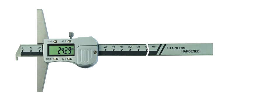 Digitalno pomično globinsko merilo s hakljem za globinske meritve, kot npr. razdalje, vdolbine in luknje. Z možnostjo shranjevanje izmerjene vrednosti za poznejše odčitavanje.