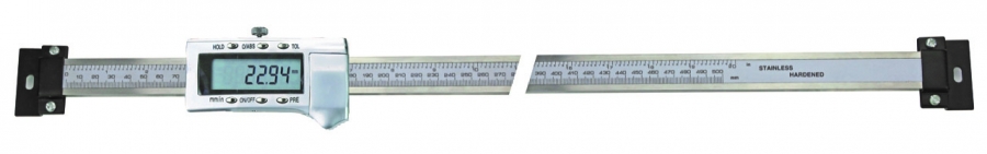 Digitalno vgradno pomično merilo za vodoravno merjenje s kapacitivnim merilnim sistemom in "PRESET" funkcijo. Iz nerjavečega jekla.