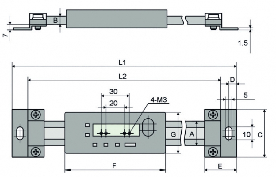 Mjerilo pomično ugradno digitalno DIN 862, horizontalno, PRESET funkcija