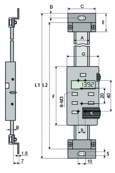 Mjerilo pomično ugradno digitalno DIN 862, vertikalno, PRESET funkcija