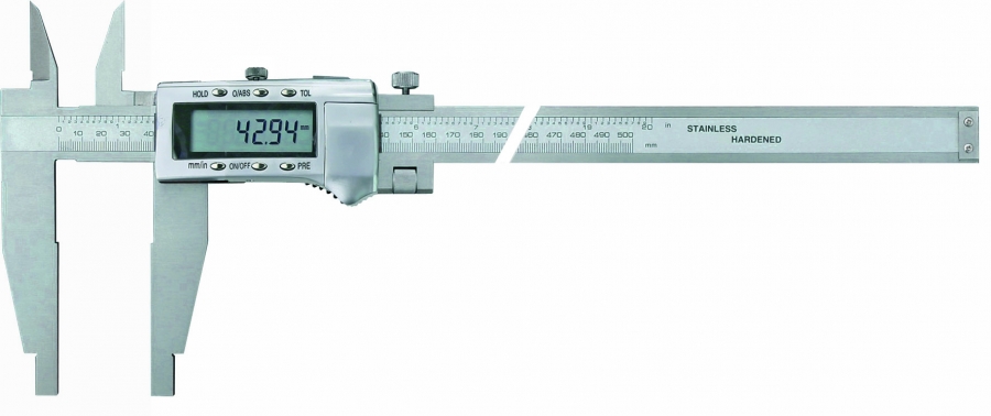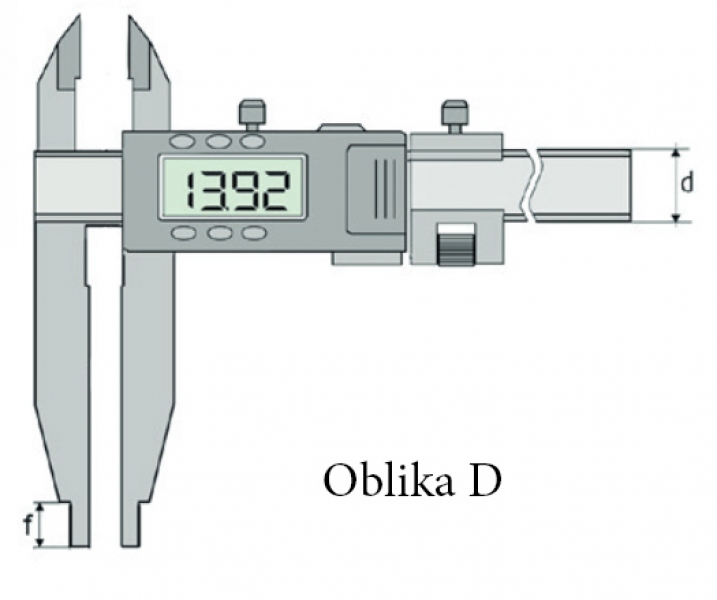 Digitalno pomično merilo s križnimi konicami in fino nastavitvijo. Možnost preklopa med absolutnimi in relativnimi meritvam, s prednastavitvijo izmerjene vrednosti.