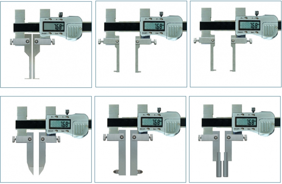 Univerzalno digitalno pomično merilo za notranje in zunanje meritve, za merjenje debeline stene ter meritve razdalje vrtanja. Merilne vložke lahko pritrdite tako zgoraj in spodaj.