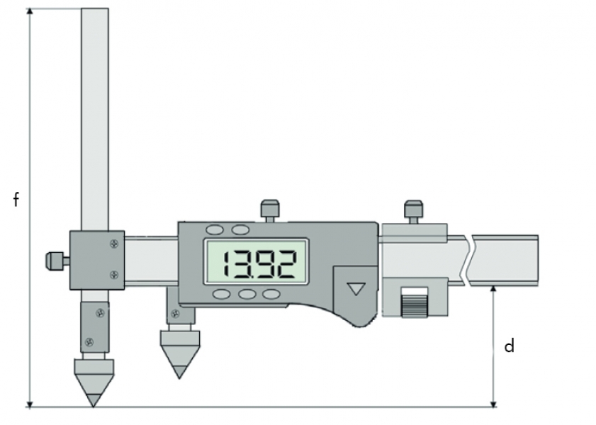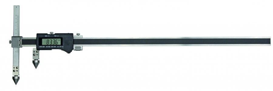 Digitalno pomično merilo za merjenje razdalje med izvrtinami s stožčastimi merilnimi nogami za centriranje na sredino izvrtine. Merilo ima možnost preklopa med absolutnimi in relativnimi meritvami ter prednastavitev izmerjenje vrednosti.
