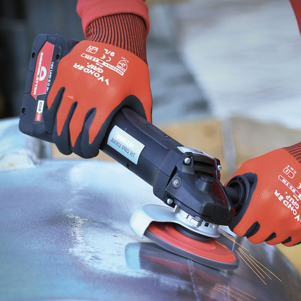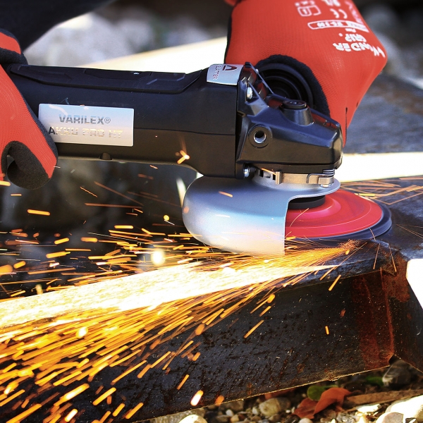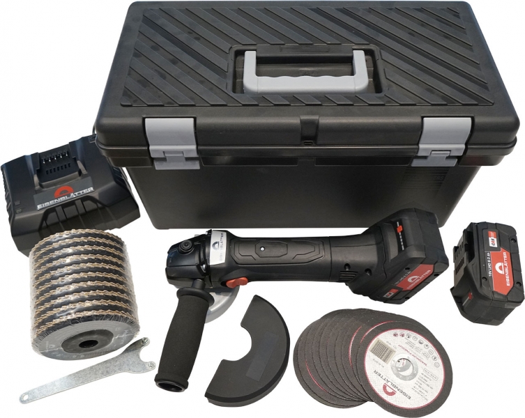 Baterijski kotni brusilni stroj s izboljšanim prenosom in zmogljivostjo. Ponaša se s hitrostjo 5600 vrtljajev/min, optimizirano za stroje z baterijski pogonom, kar pomeni, da brusi boljše in z nižjo temperaturo, kar preprečuje razbarvanje zaradi vročine.