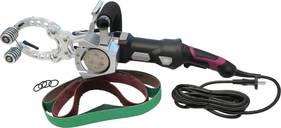 Visokozmogljiv tračni brusilnik za cevi je robustno in stabilno električno ročno orodje za hitro in kakovostno obdelavo cevi. Cevni brusilnik objame 2/3 cevi in s tem omogoča popolno (360°) obdelavo cevi iz samo enega delovnega položaja.