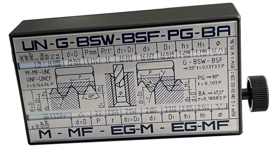 M1 - M68 MF 1 x 0,2 - MF 100 x 6 1 - 64 UNC . 4/4 UNC 0-80 UNF - 1 1/2-12 UNF 12 - 32 UNEF - 1 11/16-18 UNEF WW 1/19" - WW 6" BSF 3/16" - BSF 4 1/14" G 1/8" - G 6" (G=R) 0 BA - 14 BA PG 7 - PF 48 |