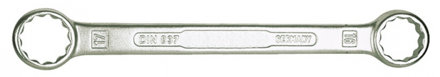 Obojestranski ravni obročni ključ z dvema različnima velikostma. Kvalitetno kovan v utopu ter iz krom-vanadijevega jekla s fino matirano površino.