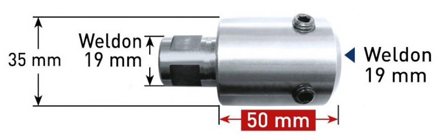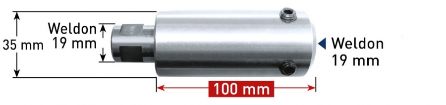 Podaljški z izvrtino 7,98 mm za uporabo kronskih svedrov Weldon19 na strojih Weldon19.