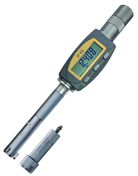 Tri točkovni digitalni notranji mikrometer z dvema merilnima glavama in zaščito IP 65. Primeren za merjenje slepih lukenj.