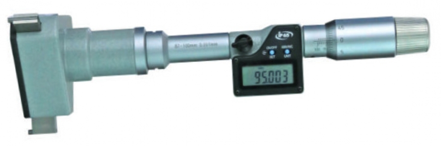Tri točkovni digitalni notranji mikrometer z nastavitvenim obročem in podaljškom. Primeren za merjenje slepih lukenj.