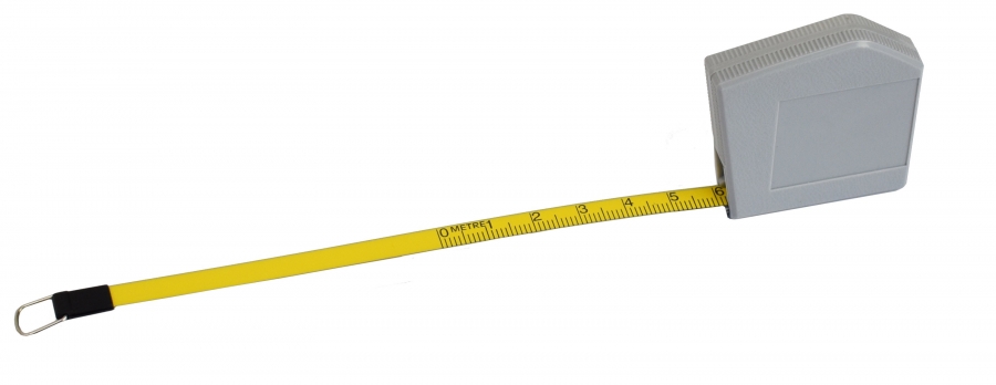 Rumeno obarvan tračni meter s prozornim lakom, ki preprečuje obrabo.