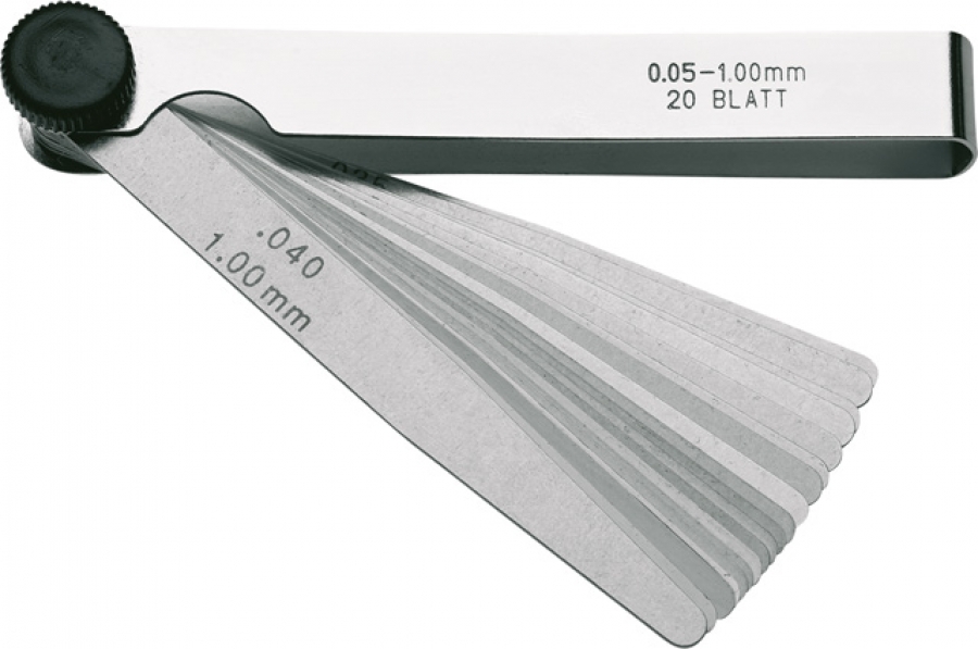 Merilni lističi so označeni po velikosti metrično in imperialno ter so proti konici stožčaste oblike. Kovinsko držalo vsebuje zaklepni vijak.