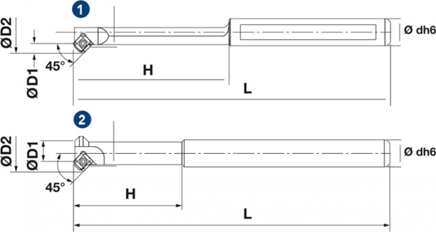 Držač glodalice kratke osovine za rubove 45° za SP.T 0603 / 09T3