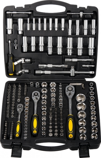 Kvalitetno 179 delno orodje 1/4” 3/8” 1/2” natičnih ključev, raglje ter dodatkov - iz krom-vanadijevega jekla v priročnem kovčku. Orodje je zaradi same postavitve hitro dostopno ob odprtju škatle.