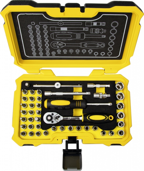 | 24x bit ključi 1/4": navadni 3 - 4 - 5 - 5,5 - 6,5 mm, Phillips PH1 - PH2 - PH3, Pozidriv PZ1 - PZ2 - PZ3, šesterokotnik SW 3 - 4 - 5 - 6 - 8 mm, Torx T8 - T10 - T15 - T20 - T25 - T27 - T30 - T40 |