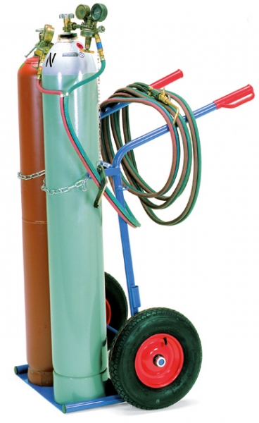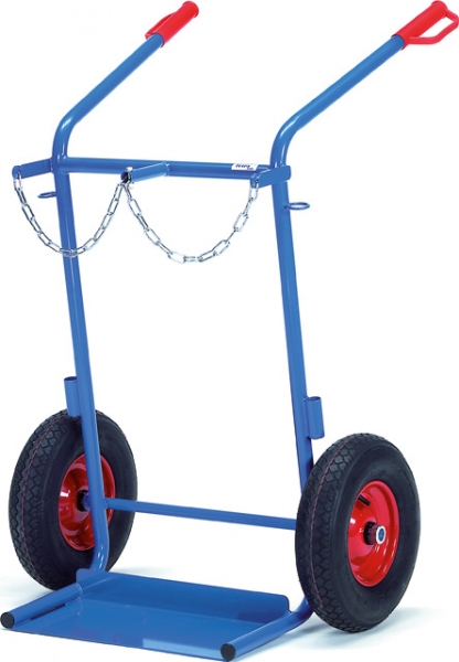 Voziček za jeklenke iz stabilne varjene konstrukcije. Trajno odporen na praske zahvaljujoč peskanju in praškastemu lakiranju.