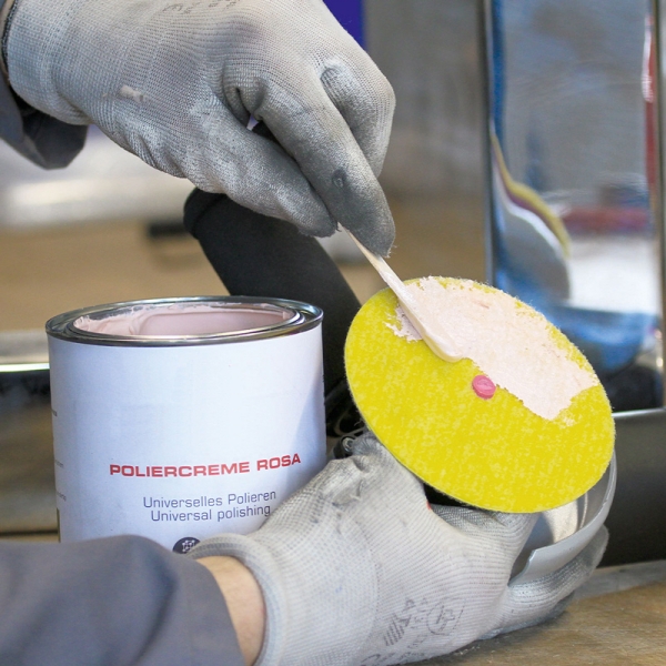 Polirna pasta za končno poliranje ustvari brezhibno zrcalno površino na vseh kovinah. Prinaša hiter sijaj - primerna tudi za ročni nanos s pomočjo polirnih krp iz mikrovlaken.