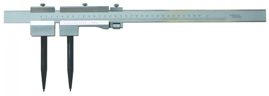 Palično zarisovalno šestilo iz nerjavnega, kaljenega jekla z mat kromirano skalo proti bleščanju. Na voljo so tudi zamenljive pisalne konice iz karbidbe trdine, ki jih lahko najdete v spodnji tabeli.