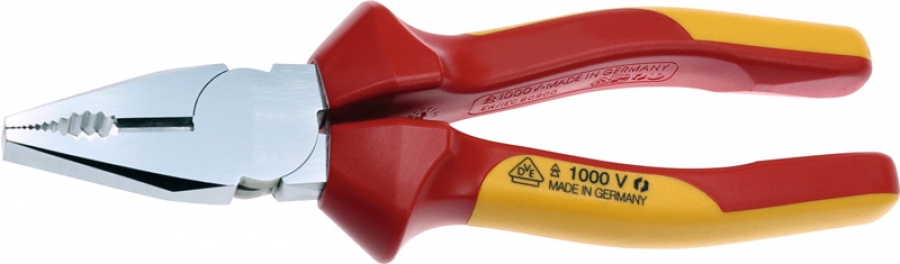 Kombinirane klešče s kromirano glavo. 35% prihranek sile v primerjavi z običajnimi kombiniranimi kleščami. Dvobarvni, večkomponentni ročaj.