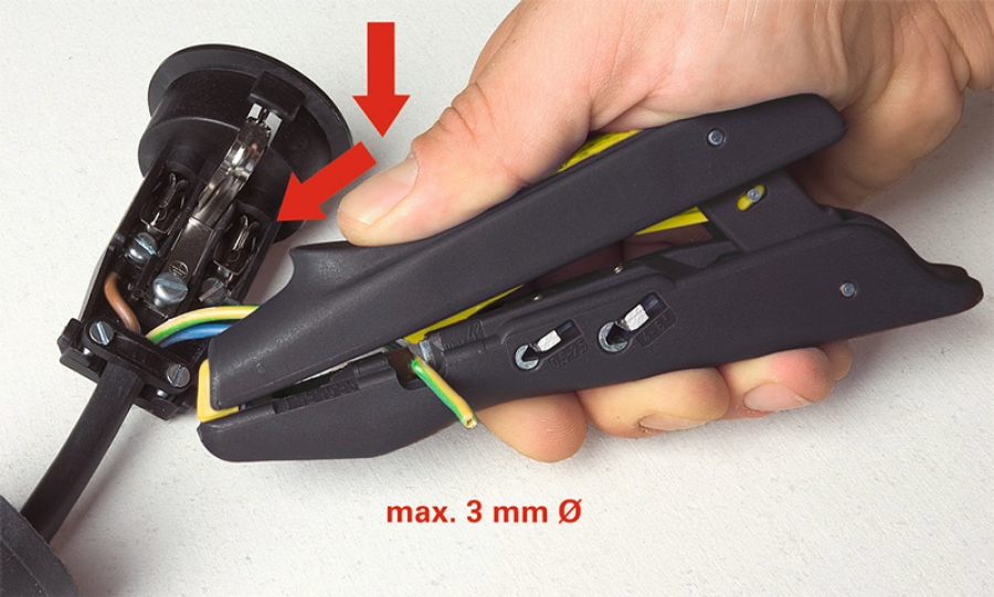 Enostavno odstranjevanje vodnikov od 0,5-6,0 mm². Poseben sistem skeniranja, ki se samodejno prilagodi prerezu vodnika, z integrirano dolžinsko skalo od 8-20 mm in za stiskanje končnih tulcev žice od 0,5-2,5 mm² ali 4, 0-6,0 mm².