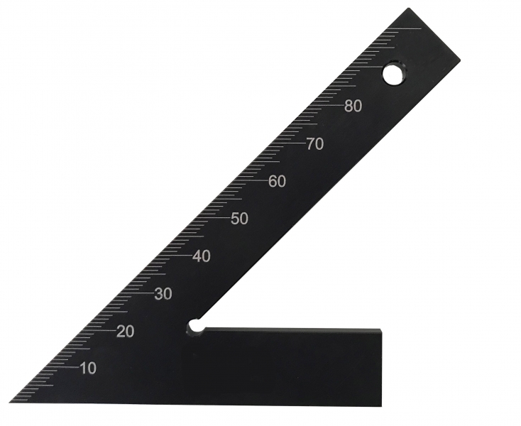Ključavničarski kotnik za merjenje kota 45° iz kaljenega črno obarvanega aluminija HRC 63.