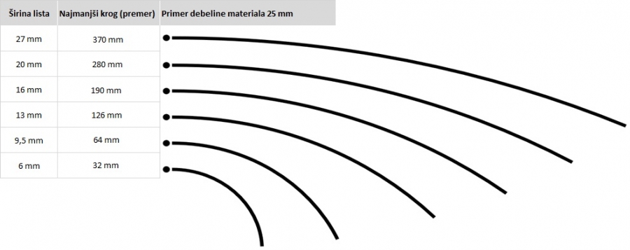 4H - Se univerzalno uporabi za modeliranje, izrezovanje, prečno rezanje. Za izbiro širine traku glej sliko "Izrez krogov in krivulj"