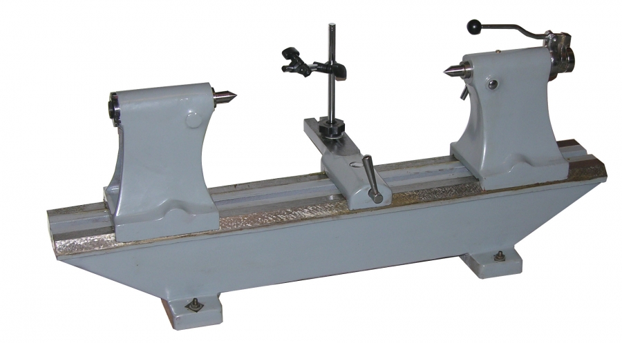 Naprava za testiranje koncentričnosti z litim okvirjem in nogicami ter z merilnim stojalom.