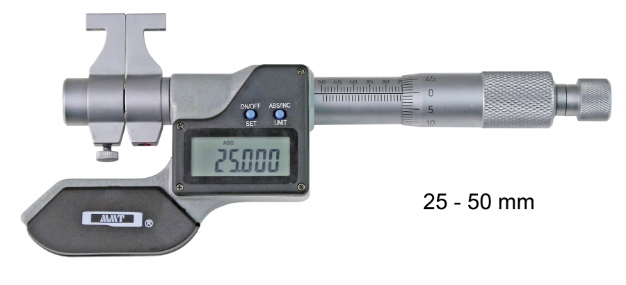 Digitalni notranji mikrometer primeren za absolutne in relativne meritve z ukrivljeno merilno površino iz trde kovine.