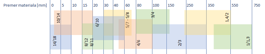 Prikazani podatki so smernice za orentacijo pri izbiri zob.
