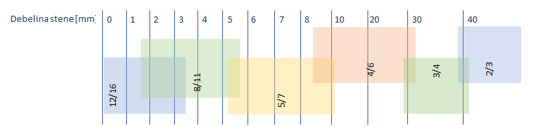Prikazani podatki so smernice za orientacijo pri izbiri zob. Pri izbiri zobov za rezanje cevi in kontrikcij nas zanima samo podatek o debelini stene oziroma najtanjši ali najdebelejši del konstrukcije. Primer pri HEA profilu vedno upoštevamo mero okoli T spoja, katero je najdebelejše.