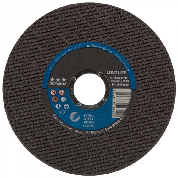 Premium rezalna plošča za obdelavo različnih vrst jekla in rezanje pločevine, profilov, cevi, palic in trdnih jeklenih materialov. Plošča ima zelo dolgo življenjsko dobo zaradi nove tehnologije "LONGLIFE".