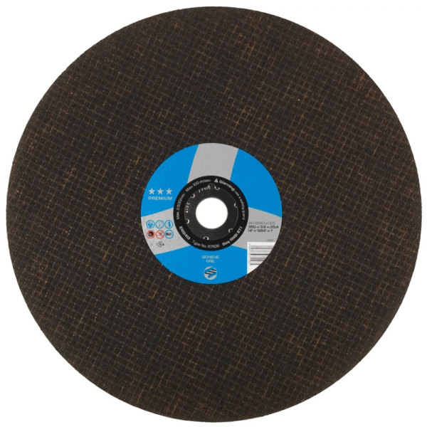 Premium rezalna plošča za rezanje železniških tirnic za uporabo na ročnih rezalnih strojih z električnimi ali bencinskimi motorji. Primerna tudi za uporabo na močnih (nad 5 kW) stacionarnih strojih.