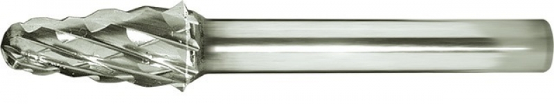 Podaljšan trdo-kovinski roto-rezkar tipa C s čelnim zaokroženim ozobljenjem.