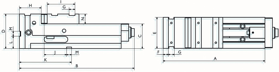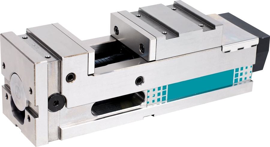 Možnost vpenjanja v štirih nivojih: osnovna stran, 2x bočno in navpično v povezavi s čelno ploščo. Vse strani so brušene vzporedno in navpično na 0,02 mm. Ponovljivost pri vpetju 0,01 mm. Primež ima hidravlični visokotlačni ojačevalnik, vpenjalni sistem, monoblok konstrukcijo in stransko okno za lažje čiščenje.